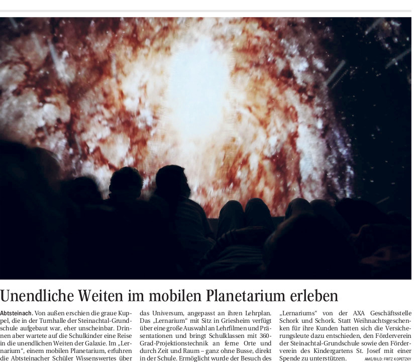 „Am Ende einer schönen Projektwoche zum Thema “Weltraum” war das Lernarium der krönenden Abschluss. Kindgerecht, faszinierend, fesselnd, kein Wort zu viel – kein Wort zu wenig, sehr professionell und absolut empfehlenswert.“